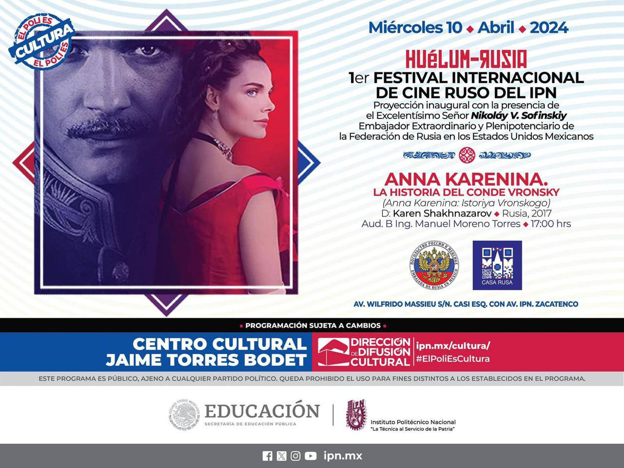 Deseamos invitar a todos ustedes conocer cultura cinematográfica rusa y visitar el Primer Festival Internacional del Cine Ruso del Instituto Politécnico Nacional que se celebrará del 10 al 29 de abril a las 17:00 horas en el Centro Cultural Jaime Torres Bodet.