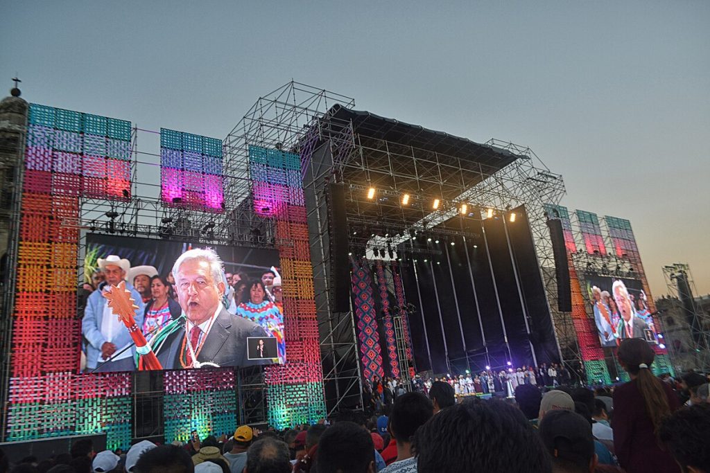 -Andrés Manuel López Obrador dirigiendo un mensaje tras tomar protesta como presidente. Celebración cultural por el inicio de la cuarta transformación, festival en el Zócalo capitalino de la Ciudad de México. ProtoplasmaKid.